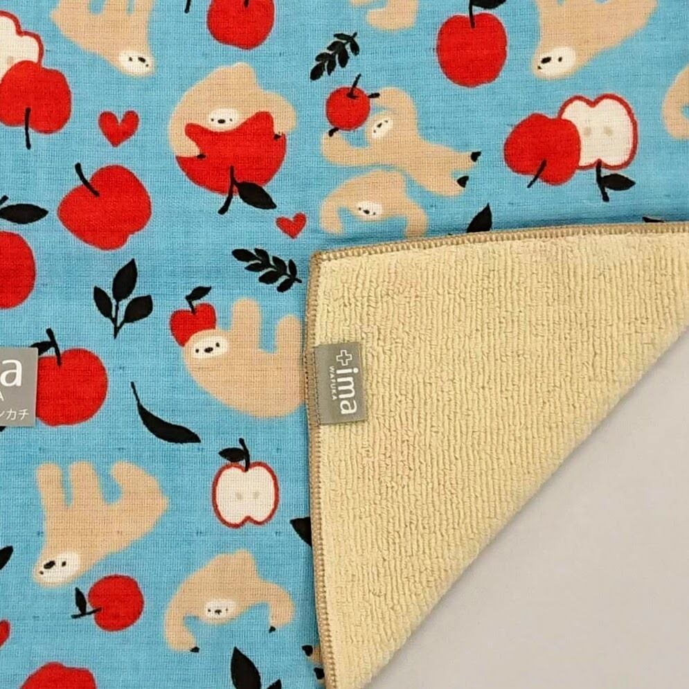 【日本製】リンゴとナマケモノ 今治うまれのガーゼハンカチ +ima プチギフト